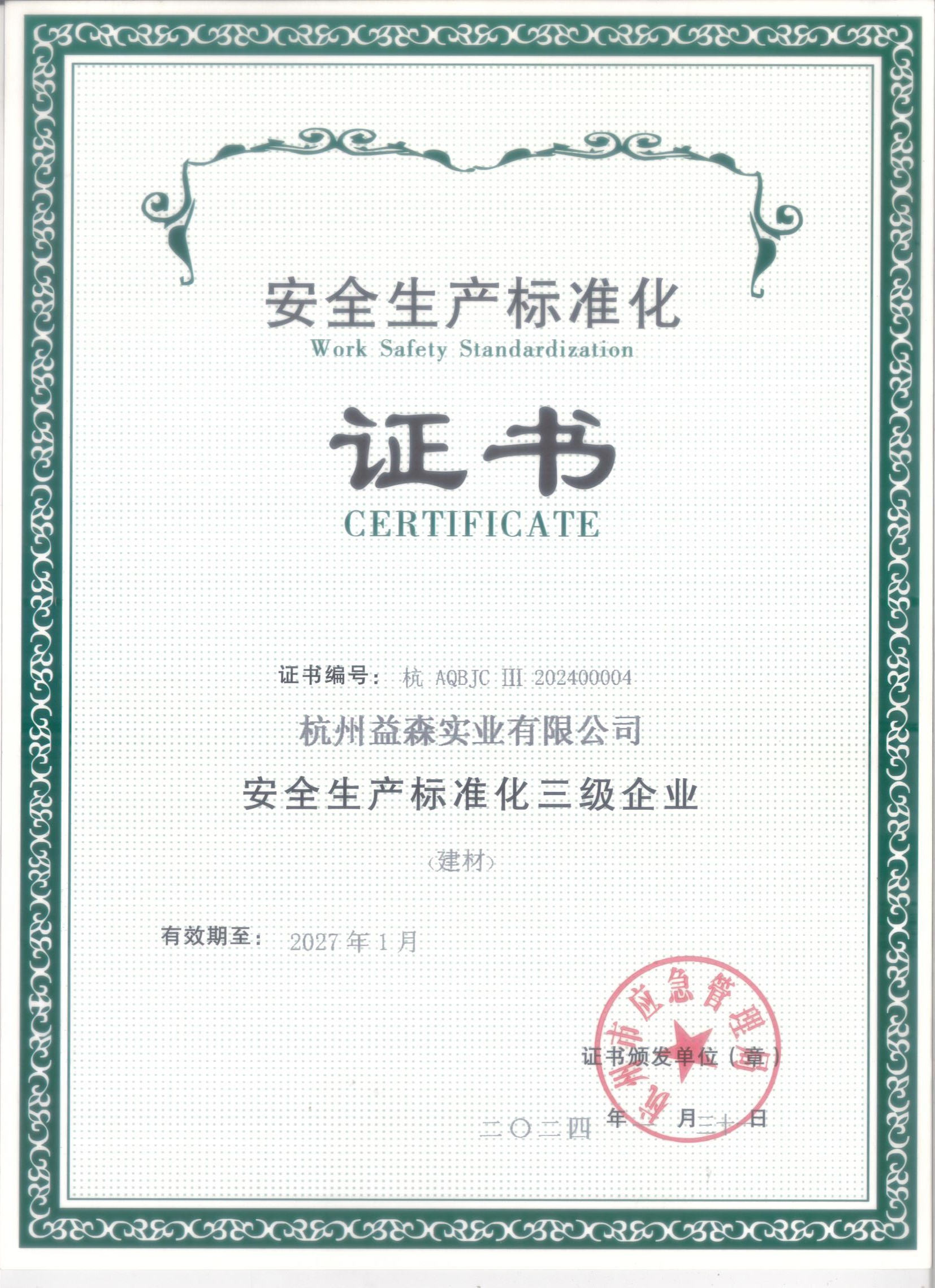 安全生產(chǎn)標(biāo)準(zhǔn)化證書
